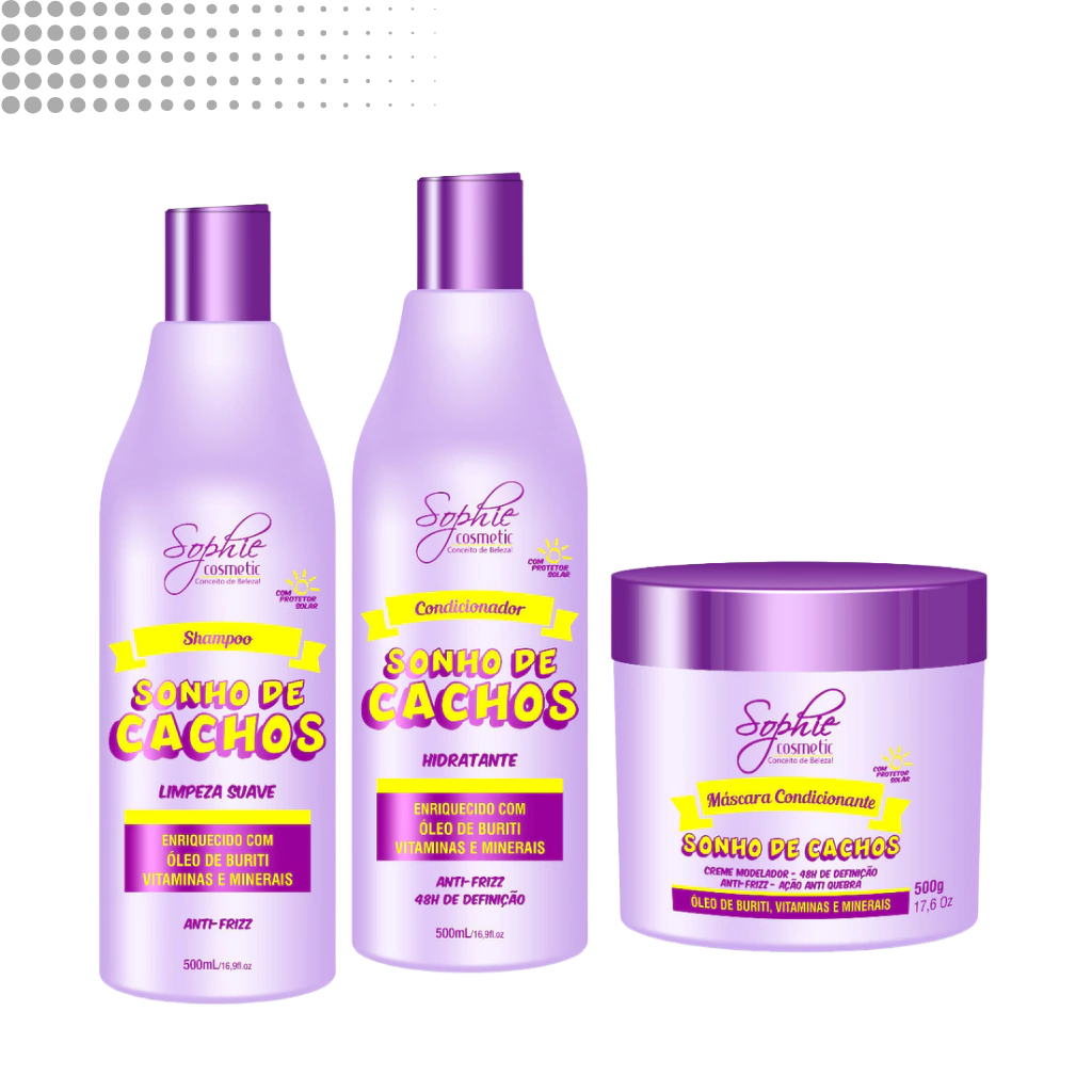 Kit Sonho de Cachos com Shampoo 500ml + Mascara 500g + Condicionador 500ml Sophie Cosmetic