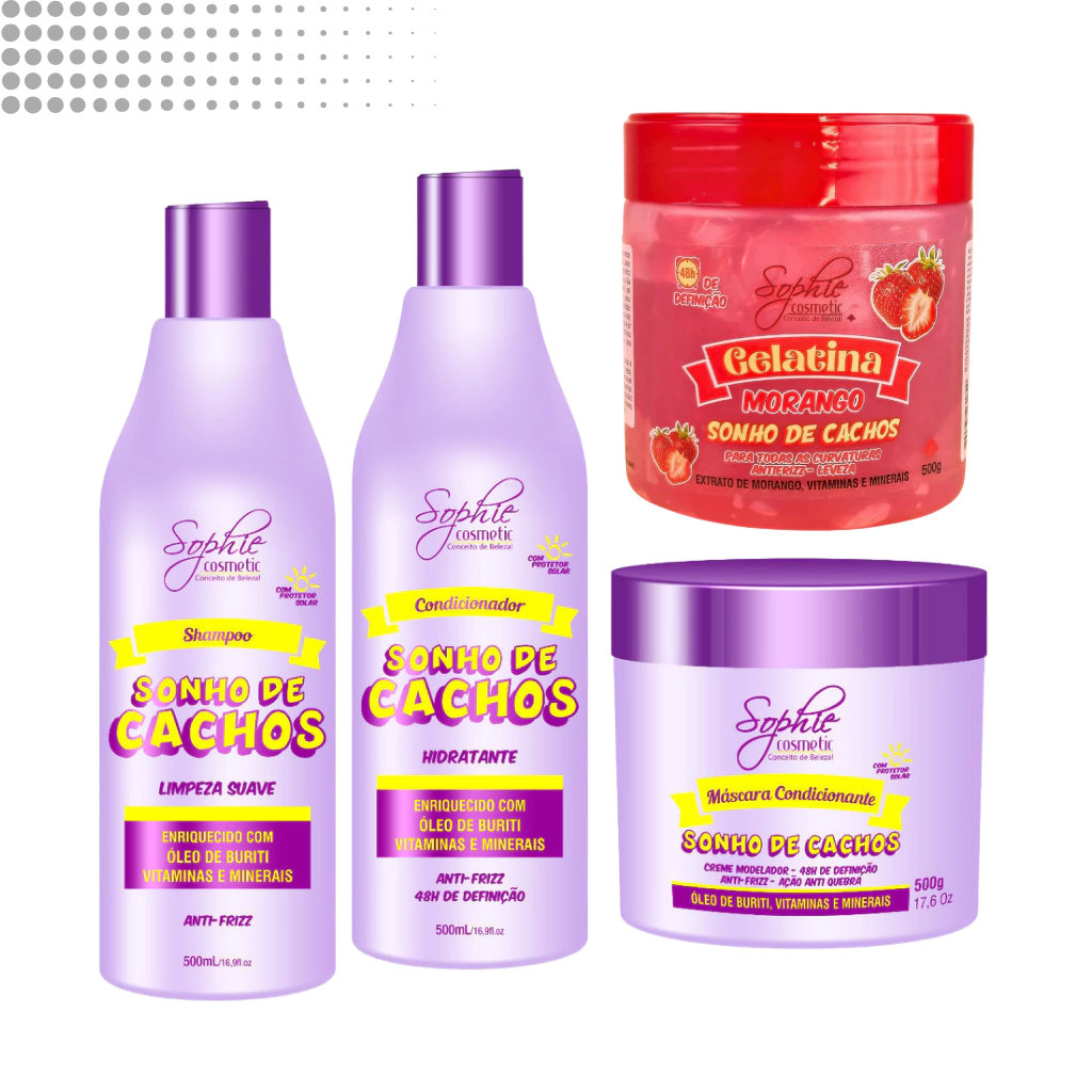 Kit Sonho de Cachos com Shampoo 500ml + Mascara 500g + Condicionador 500ml Sophie Cosmetic