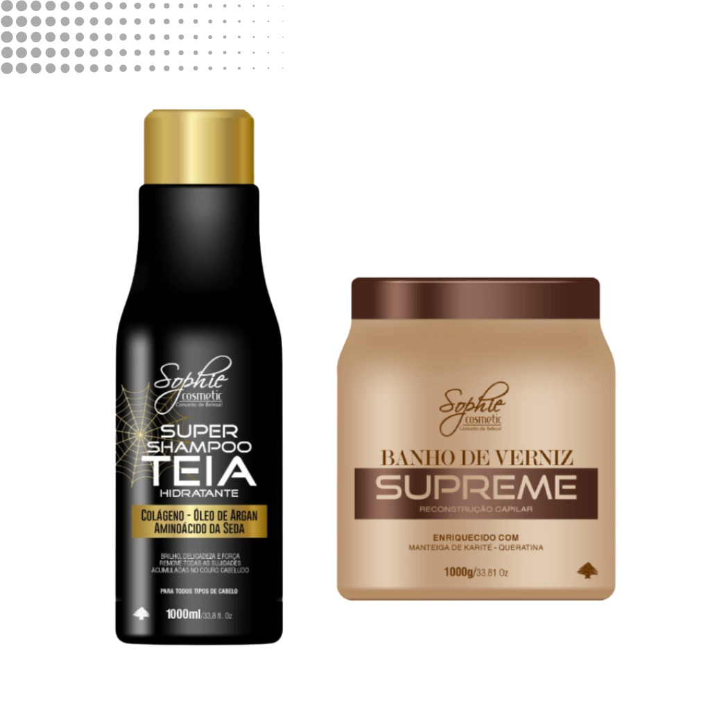 KIT BRILHO EXTREMO E RECONSTRUÇÃO 4D | SUPER SHAMPOO TEIA 1L + BANHO DE VERNIZ 1KG – SOPHIE COSMETIC