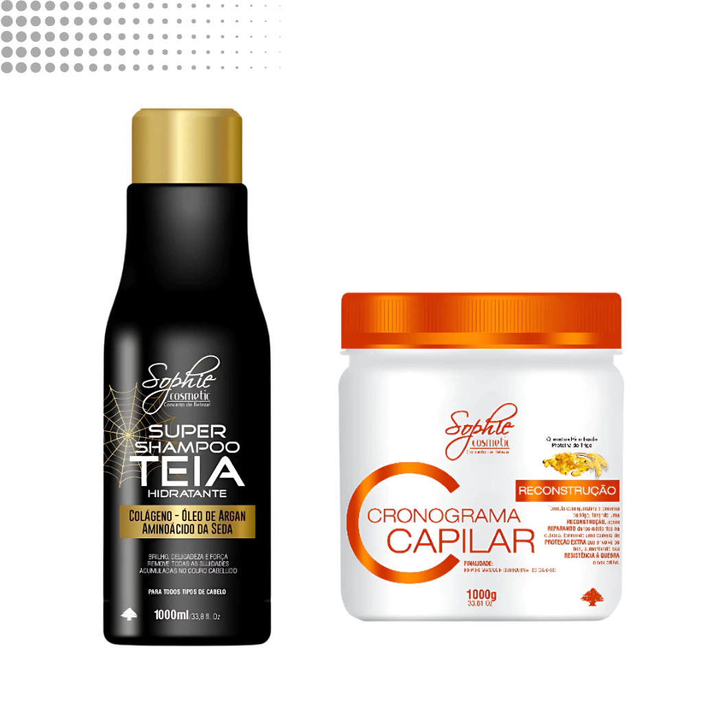 KIT RECONSTRUÇÃO PROFUNDA | SUPER SHAMPOO TEIA 1L + MÁSCARA RECONSTRUÇÃO CRONOGRAMA 1KG – SOPHIE COSMETIC