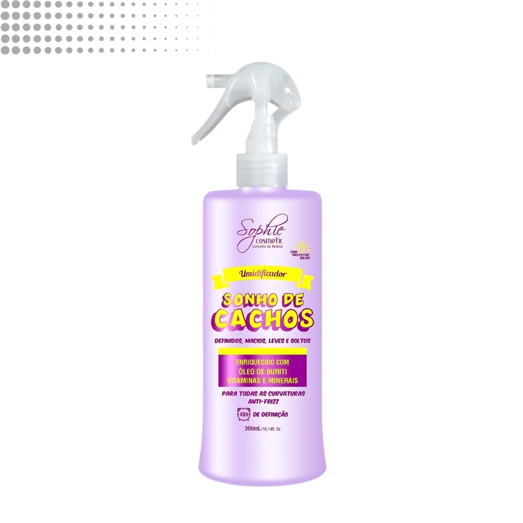 Esse umidificador ajuda a deixar os cachos mais definidos, leves e soltos. Ele hidrata o cabelo, facilita na hora de pentear e ainda controla o volume. Também ajuda a evitar o frizz, mesmo em dias úmidos, controlando assim os fios rebeldes e arrepiados.